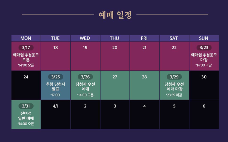 ✔️ 예매 시작: 시즌별 공지 (4월 / 9월)